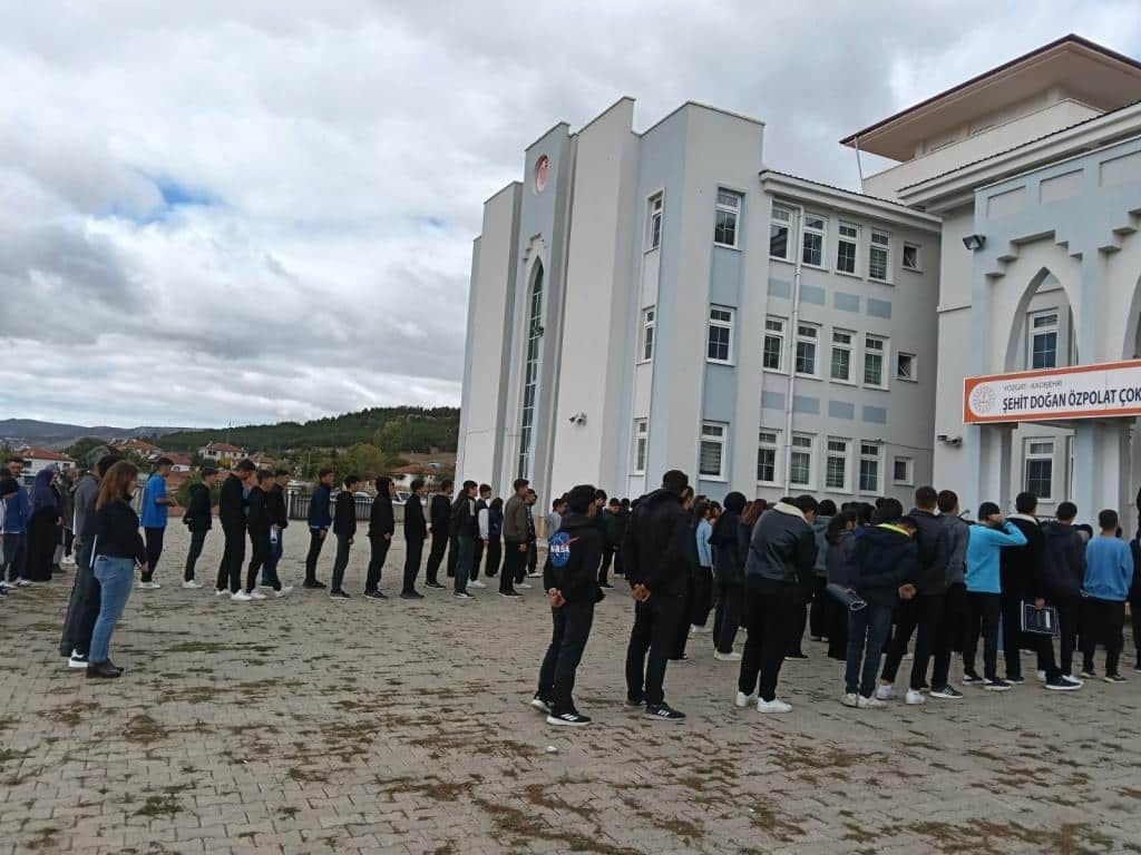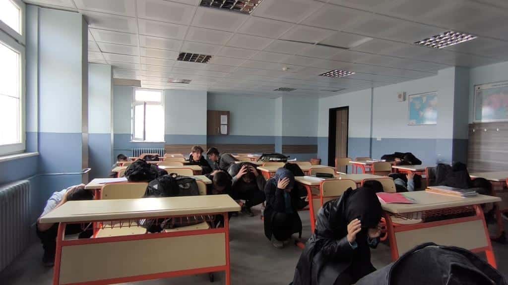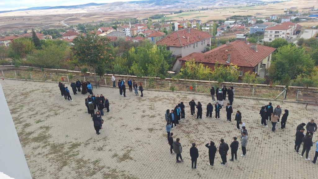 Okulumuzda deprem tatbikatı gerçekleştirildi.Tatbikat ile ile ilgili sivil sanunma kulübü tarafından öğrenciler bilgilendirildi.Tahliye planı oluşturuldu.İlk etapta sınıflarda sıraların kenarında 'çök kapan tutun' hareketi yapıldı.İkinci etapta tahliye planına uyarak okul boşaltıldı.